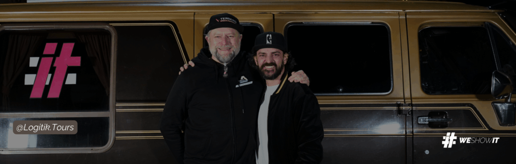 Zum Start war meine Strategie ehrlich gesagt „keine Strategie“. Sind wir mal ehrlich ein Podcast oder gar Video Format wie Logistik.Tours lebt natürlich von den Gästen. Bei einer Veranstaltung wie dem Logistics Summit 2023 ergbit sich so die Möglichkeit einfach mal mit dicken Chefs von Unternehmen persönlich zu schnacken. Bei mir eben mit dem Mikrofon und einer Kamera auf der Rückbank eines 40 Jahre alten, goldenen G2 „Chevy Van“ im original Zustand…